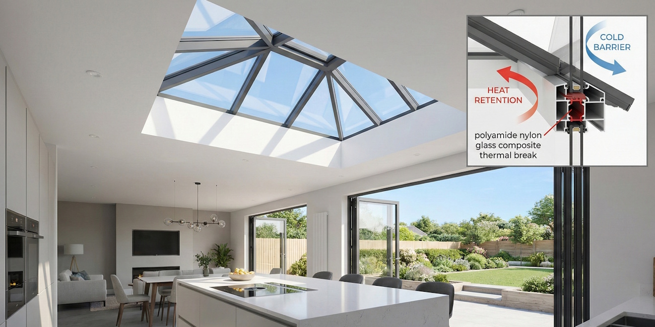 A historical critique of highly glazed extensions has been their poor thermal performance, often resulting in spaces that are too stifling in July and freezing in December. However, modern engineering has completely eradicated this issue for those who invest in premium systems. The defining hallmark of high-quality aluminium lantern roof lights is their hidden thermal technology.
